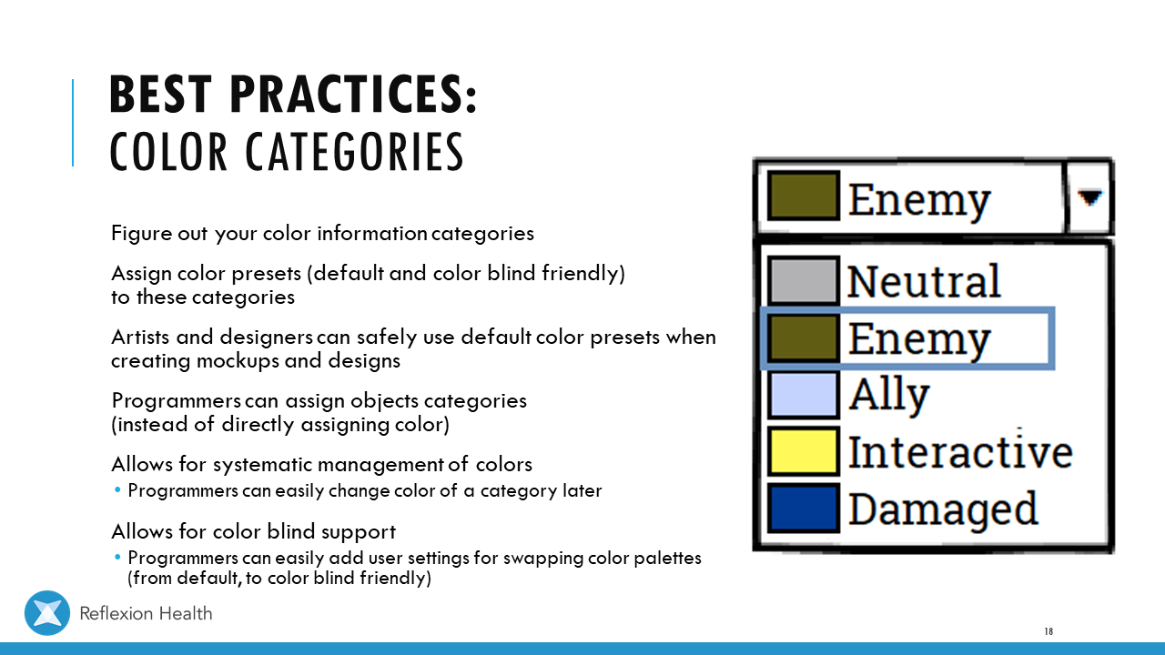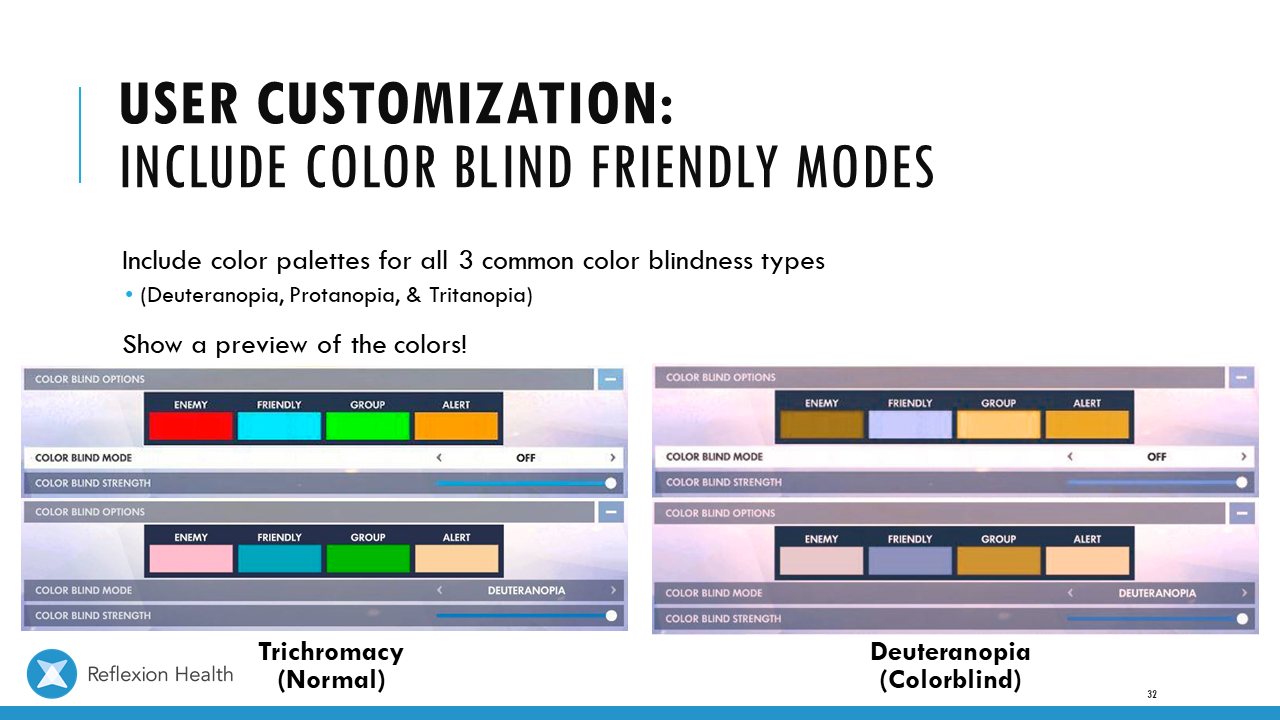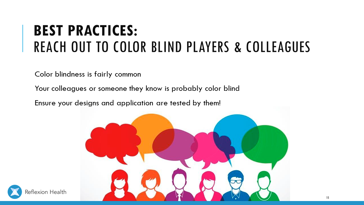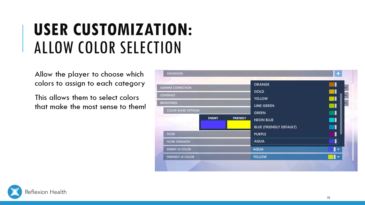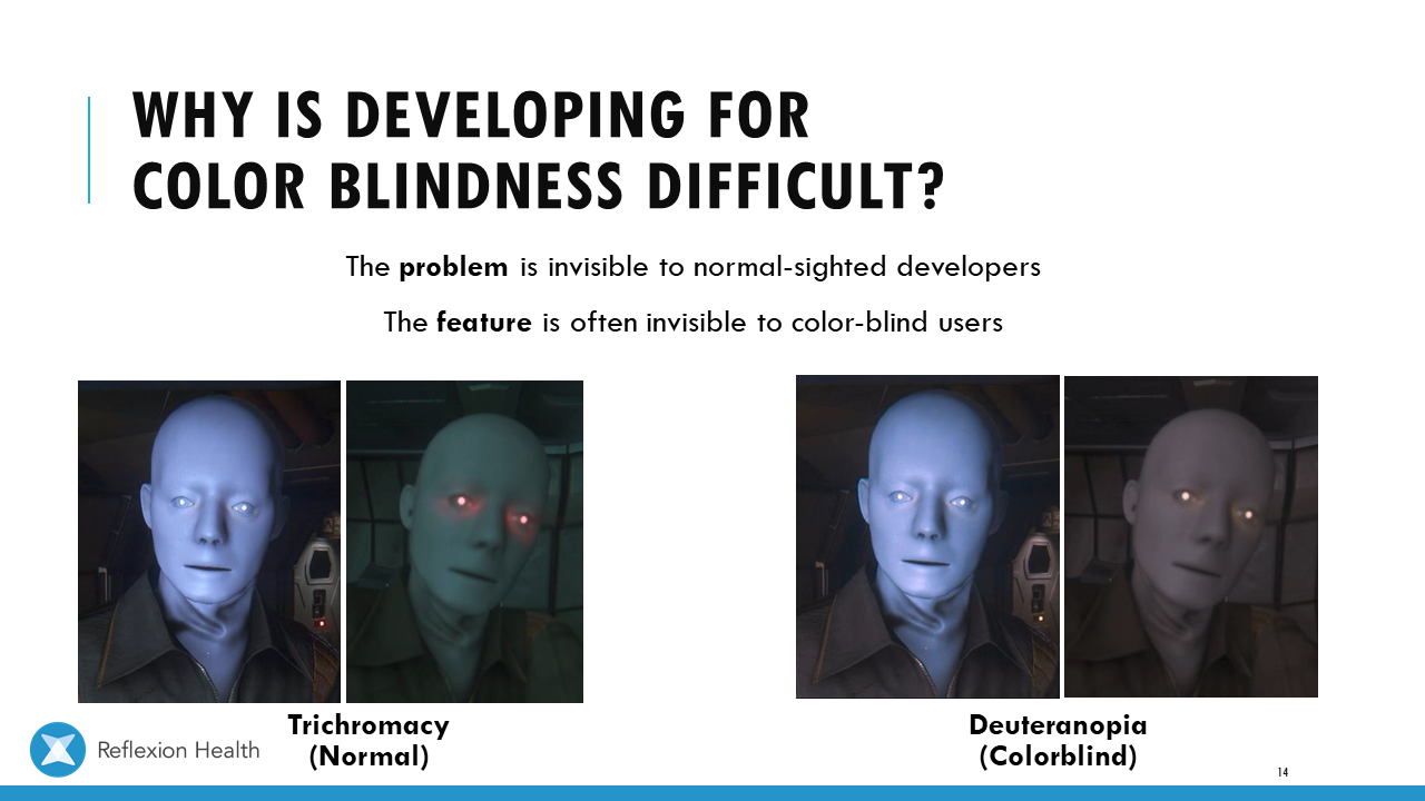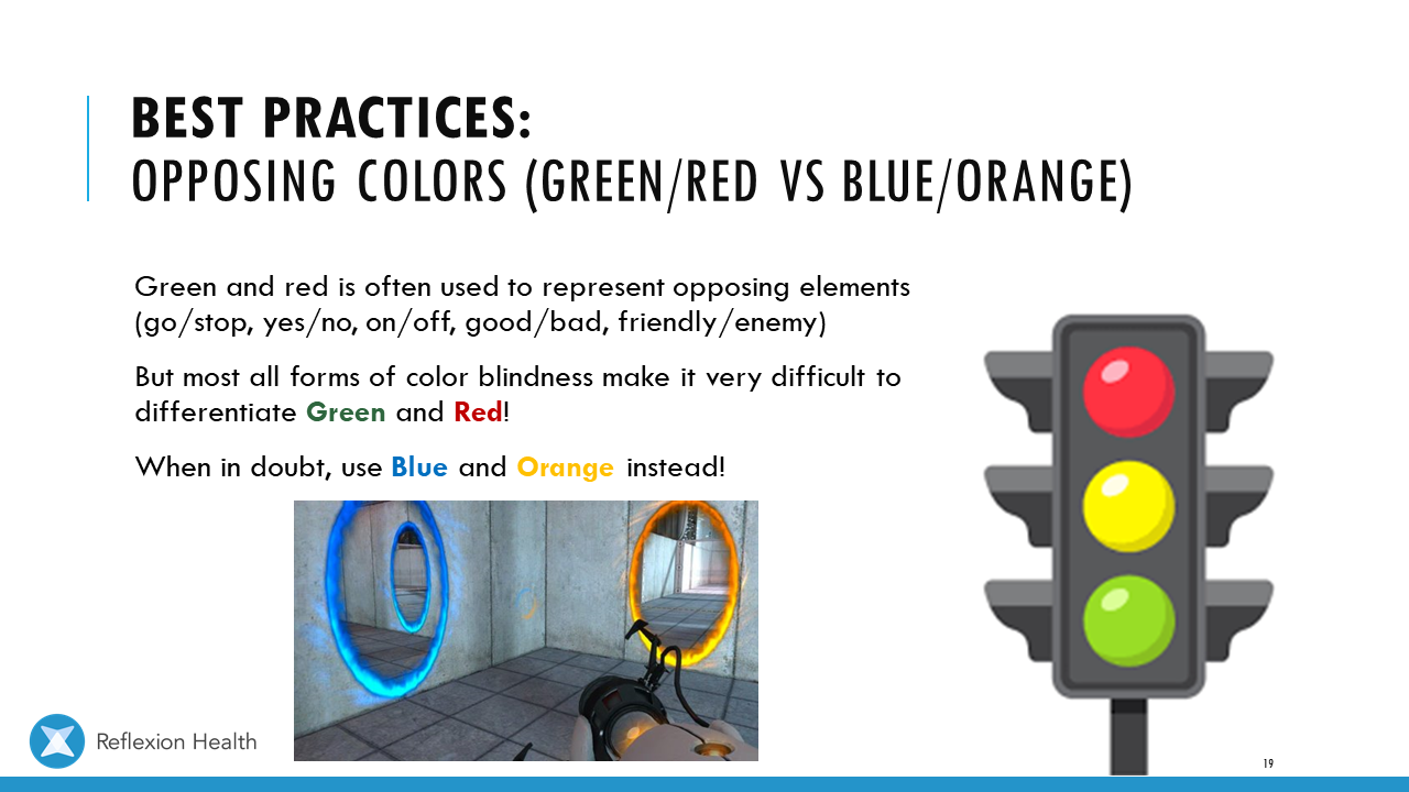Accessible Game Design (Talk 2):Color Accessibility Download PDF Slide 1 Slide 1 (current slide) Slide 2 Slide 2 (current slide) Slide 3 Slide 3 (current slide) Slide 4 Slide 4 (current slide) Slide 5 Slide 5 (current slide) Slide 6 Slide 6 (current slide) Slide 7 Slide 7 (current slide) Slide 8 Slide 8 (current slide) Slide 9 Slide 9 (current slide) Slide 10 Slide 10 (current slide) Slide 11 Slide 11 (current slide) Slide 12 Slide 12 (current slide) Slide 13 Slide 13 (current slide) Slide 14 Slide 14 (current slide) Slide 15 Slide 15 (current slide) Slide 16 Slide 16 (current slide) Slide 17 Slide 17 (current slide) Slide 18 Slide 18 (current slide) Slide 19 Slide 19 (current slide) Slide 20 Slide 20 (current slide) Slide 21 Slide 21 (current slide) Slide 22 Slide 22 (current slide) Slide 23 Slide 23 (current slide) Slide 24 Slide 24 (current slide) Slide 25 Slide 25 (current slide) Slide 26 Slide 26 (current slide) Slide 27 Slide 27 (current slide) Slide 28 Slide 28 (current slide) Slide 29 Slide 29 (current slide) Slide 30 Slide 30 (current slide) Slide 31 Slide 31 (current slide) Slide 32 Slide 32 (current slide) Slide 33 Slide 33 (current slide) Slide 34 Slide 34 (current slide) Slide 35 Slide 35 (current slide) Slide 36 Slide 36 (current slide) Slide 37 Slide 37 (current slide) <- Previous Talk: Text Accessibility Next Talk: Audio Accessibility ->