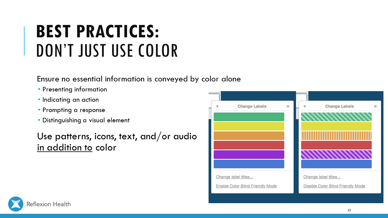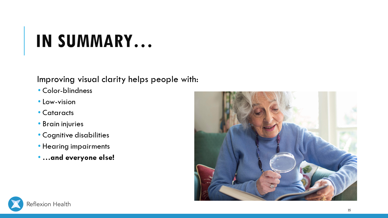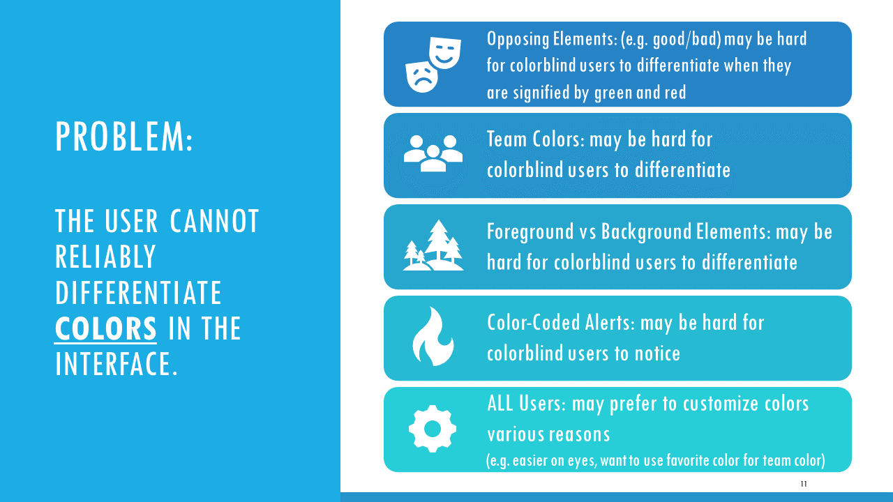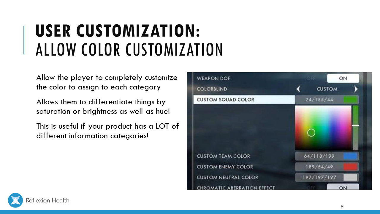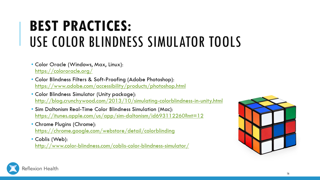 Accessible Game Design (Talk 2):Color Accessibility Download PDF Slide 1 Slide 1 (current slide) Slide 2 Slide 2 (current slide) Slide 3 Slide 3 (current slide) Slide 4 Slide 4 (current slide) Slide 5 Slide 5 (current slide) Slide 6 Slide 6 (current slide) Slide 7 Slide 7 (current slide) Slide 8 Slide 8 (current slide) Slide 9 Slide 9 (current slide) Slide 10 Slide 10 (current slide) Slide 11 Slide 11 (current slide) Slide 12 Slide 12 (current slide) Slide 13 Slide 13 (current slide) Slide 14 Slide 14 (current slide) Slide 15 Slide 15 (current slide) Slide 16 Slide 16 (current slide) Slide 17 Slide 17 (current slide) Slide 18 Slide 18 (current slide) Slide 19 Slide 19 (current slide) Slide 20 Slide 20 (current slide) Slide 21 Slide 21 (current slide) Slide 22 Slide 22 (current slide) Slide 23 Slide 23 (current slide) Slide 24 Slide 24 (current slide) Slide 25 Slide 25 (current slide) Slide 26 Slide 26 (current slide) Slide 27 Slide 27 (current slide) Slide 28 Slide 28 (current slide) Slide 29 Slide 29 (current slide) Slide 30 Slide 30 (current slide) Slide 31 Slide 31 (current slide) Slide 32 Slide 32 (current slide) Slide 33 Slide 33 (current slide) Slide 34 Slide 34 (current slide) Slide 35 Slide 35 (current slide) Slide 36 Slide 36 (current slide) Slide 37 Slide 37 (current slide) <- Previous Talk: Text Accessibility Next Talk: Audio Accessibility ->