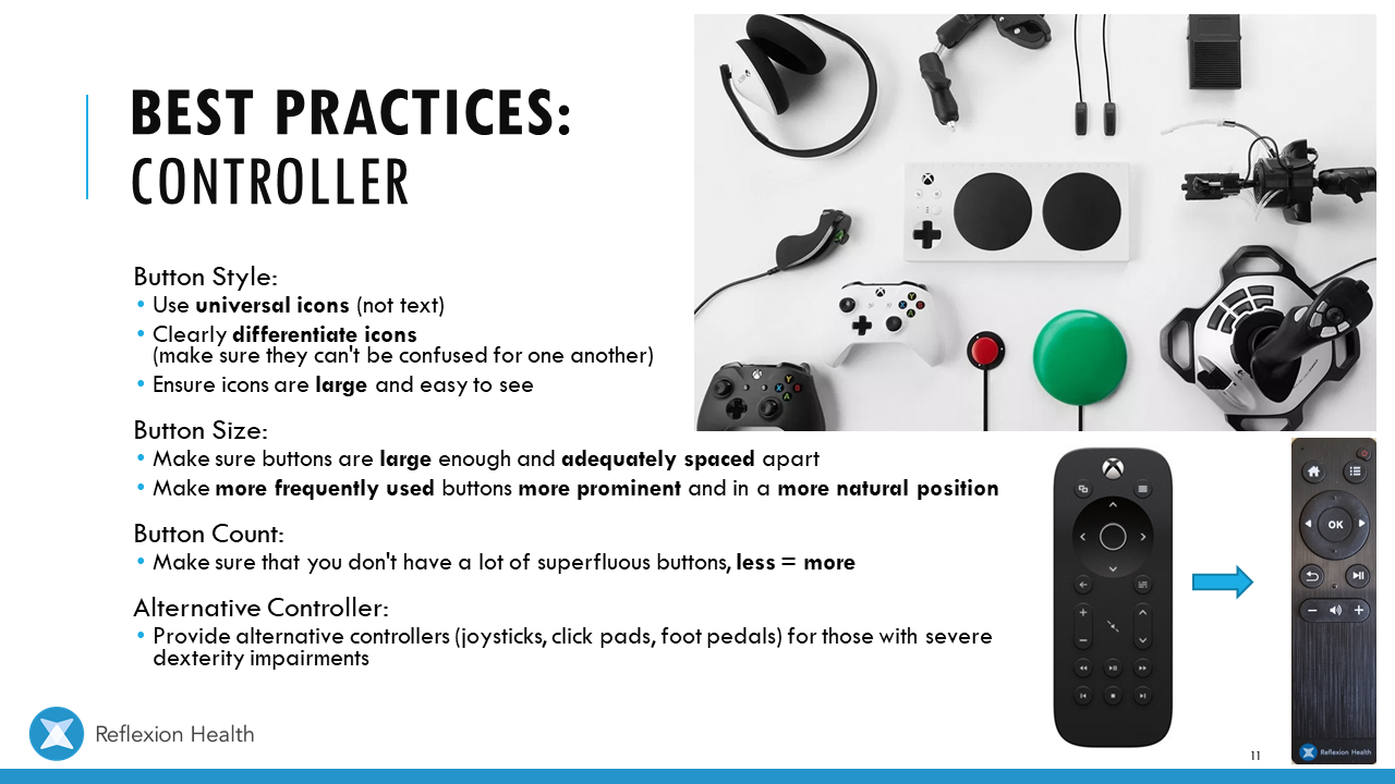 Accessible Game Design (Talk 4):Control Accessibility Download PDF Slide 1 Slide 1 (current slide) Slide 2 Slide 2 (current slide) Slide 3 Slide 3 (current slide) Slide 4 Slide 4 (current slide) Slide 5 Slide 5 (current slide) Slide 6 Slide 6 (current slide) Slide 7 Slide 7 (current slide) Slide 8 Slide 8 (current slide) Slide 9 Slide 9 (current slide) Slide 10 Slide 10 (current slide) Slide 11 Slide 11 (current slide) Slide 12 Slide 12 (current slide) Slide 13 Slide 13 (current slide) Slide 14 Slide 14 (current slide) Slide 15 Slide 15 (current slide) Slide 16 Slide 16 (current slide) Slide 17 Slide 17 (current slide) Slide 18 Slide 18 (current slide) Slide 19 Slide 19 (current slide) Slide 20 Slide 20 (current slide) Slide 21 Slide 21 (current slide) Slide 22 Slide 22 (current slide) Slide 23 Slide 23 (current slide) Slide 24 Slide 24 (current slide) Slide 25 Slide 25 (current slide) Slide 26 Slide 26 (current slide) Slide 27 Slide 27 (current slide) Slide 28 Slide 28 (current slide) Slide 29 Slide 29 (current slide) Slide 30 Slide 30 (current slide) Slide 31 Slide 31 (current slide) Slide 32 Slide 32 (current slide) Slide 33 Slide 33 (current slide) <- Previous Talk: Audio Accessibility Future Talks ->